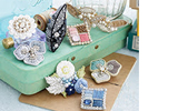 当講座では、刺繍が初めてという方もオートクチュール刺繍を気軽に楽しんでいただけるよう、ぬい針だけで装飾する技法を学びます。ブローチやネックレス。日常使いやすい作品になっています。
